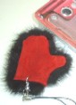 ファンファークリーナーミトン ブラックミンク/レッドレザー